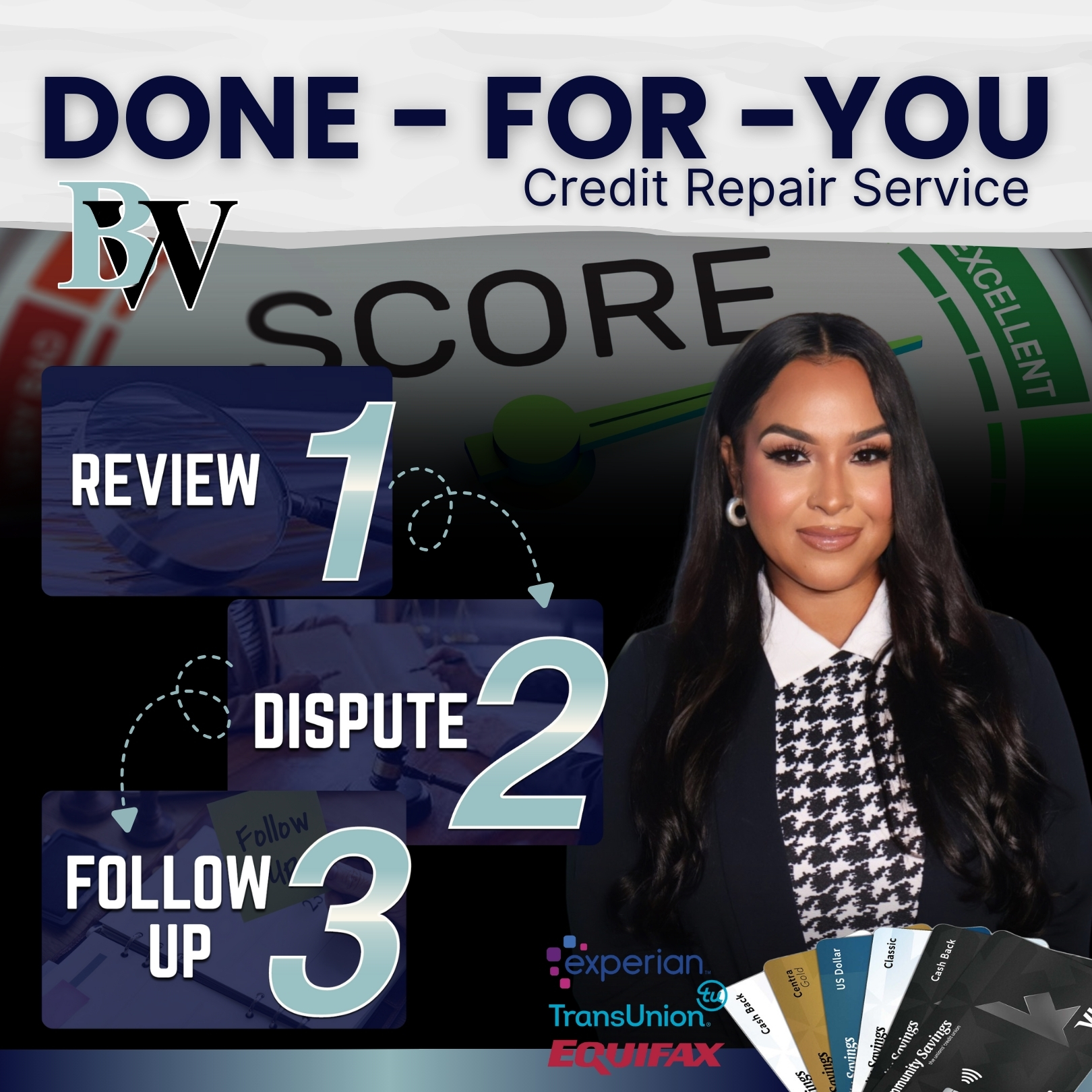 The Done-For-You Credit Repair Service is a hands-on solution where our team takes care of the heavy lifting for you. Instead of trying to figure out credit laws, write disputes, and track responses on your own, we handle the entire process — from pulling your reports to sending out tailored dispute letters and monitoring results.